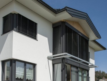 Bruckner Fenster bieten durch zahlreiches Zubehör der Firma Schlotterer besten Sicht- und Sonnenschutz.