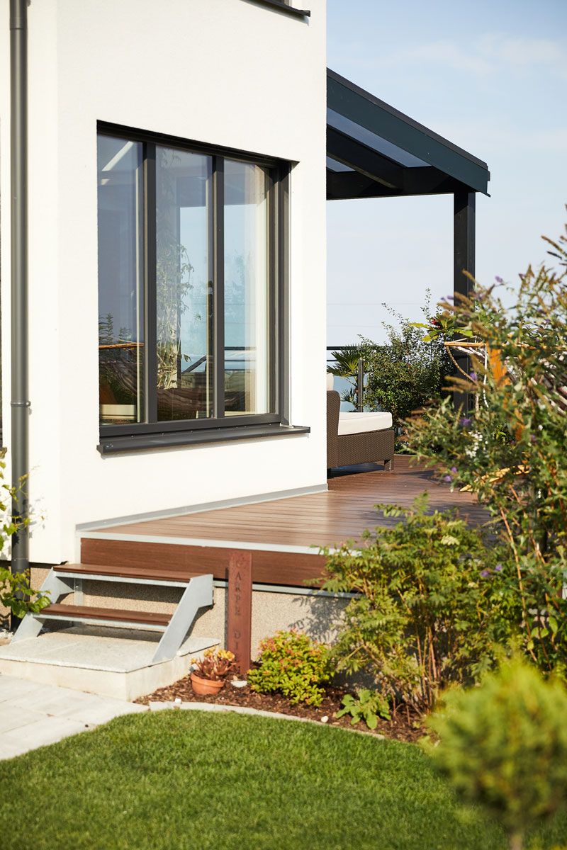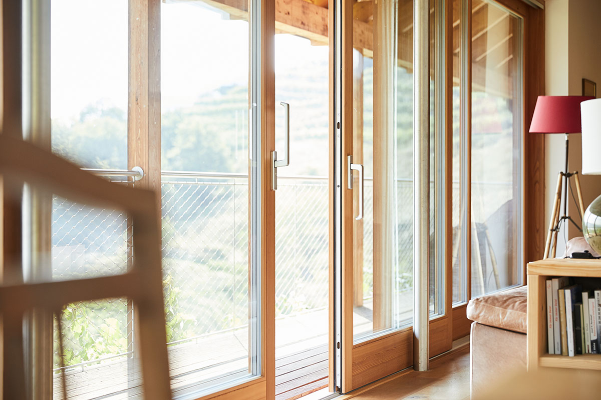 Die Bruckner Hebeschiebetüren mit den großen Öffnungen und riesigen Glasflächen erlauben ungestörten Weitblick